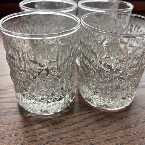 2 stk vintage Ravenhead Whitefire glassskåler i klart glass med dekorativt mønster.