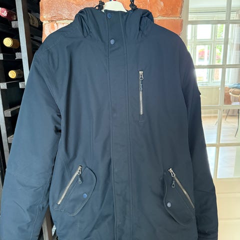 Jean Paul vinterjakke til herre. Mørkeblå, med refleks på hetta. Pent brukt. Str XXL.