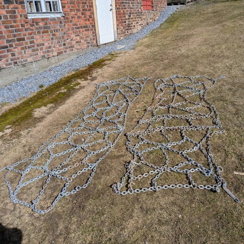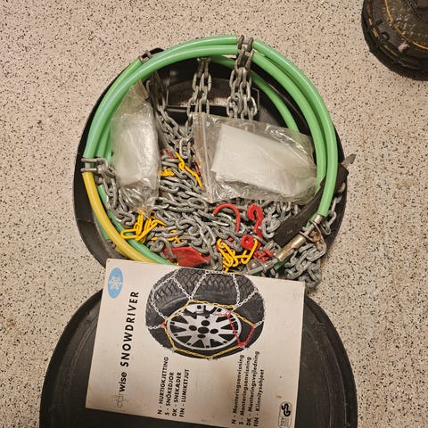 Trygg kjetting i pose. Ubrukt 4 stk piggkjetting. Passer 265-65-17.