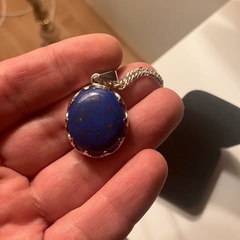 Bronsefarget regulerbar ring og kjede + anheng i Saga / Snorre stil. Kjedet er ca 34 cm langt.