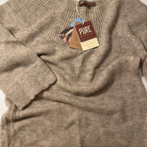 Tykk kaki-farget genser i alpakka-blanding, 3/4 arm str M