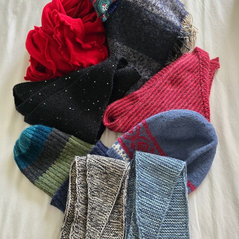 Se bilder. Vottene er godt brukt, ellers er plaggene omtrent ubrukt.