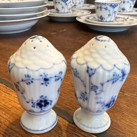 Royal Copenhagen Salt- og pepperbøsse i porselen med blått mønster