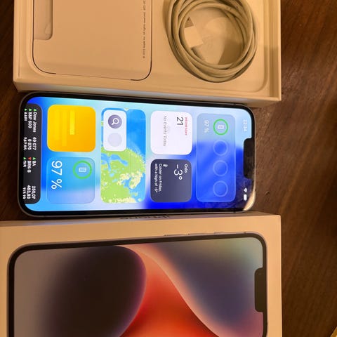 Apple iPhone 14 med 128 GB lagringskapasitet med blå farge. Kjøpt juni 2023 og har kun blitt brukt som jobbtelefon med deksel og skjermbeskyttelse. Veldig pent brukt, ingen synlige skader. Batteritilstand er 82%