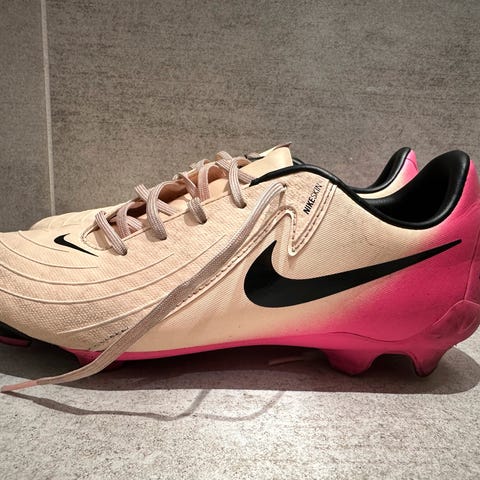 Nike Phantom GX React TF fotballsko i størrelse 42. Skoene er brukt to ganger men veldig grå på undersiden fordi dei har blitt brukt på kunstgress med knotter. Veldig behagelige sko, så visst du har problem med beina ville jeg virkelig rekkomendert disse.