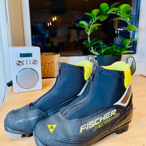 Fischer skøyteski sko med svart og gul farge. Skoene er designet for bruk ved skøyting på ski. Størrelsen er 32