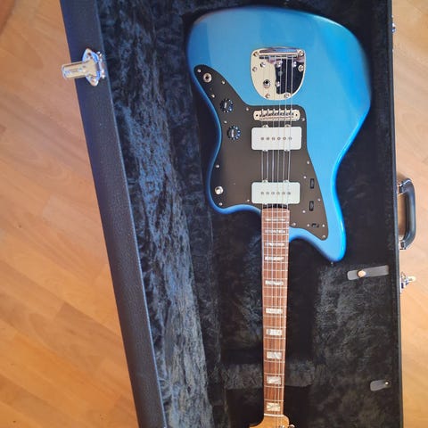 Til salgs en nydelig Duesenberg Starplayer Special i finishen Blue Sparkle. Ifølge serienummer er gitaren fra 2002. Rock hard stabil og rett maple neck, alder body, indian rosewood fretboard med jevne, fine bånd uten nevneverdig slitasje. Duesenberg GrandVintage Humbucker i neck og Duesenberg CrunchBucker i bridge, som låter enormt bra.