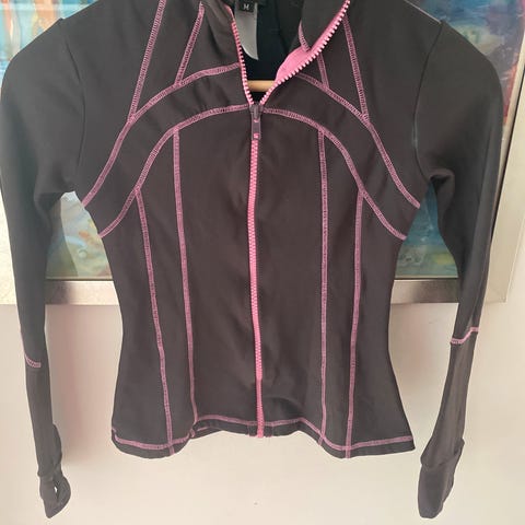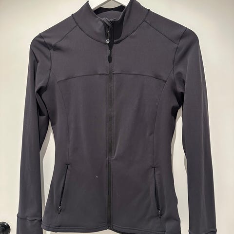 En treningsjakke fra det eksklusive australske merket Lorna Jane. Stoffet er helt fantastisk – det minner om materialet i Lululemon Align, men føles enda tynnere, mykere og mer smidig mot huden. Den har lekre mesh-detaljer over skuldre og rygg som gir god ventilasjon.