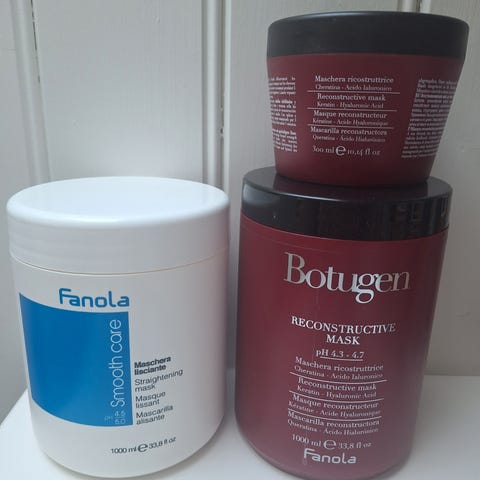 Fanola No Yellow Shampoo 300 ml er en sjampo som motvirker gule toner i håret. Wella Color Fresh mask Pearl Blonde 75 ml er en fargebehandling for blondt hår. Begge produktene er beregnet for hårpleie og fargebehandling.