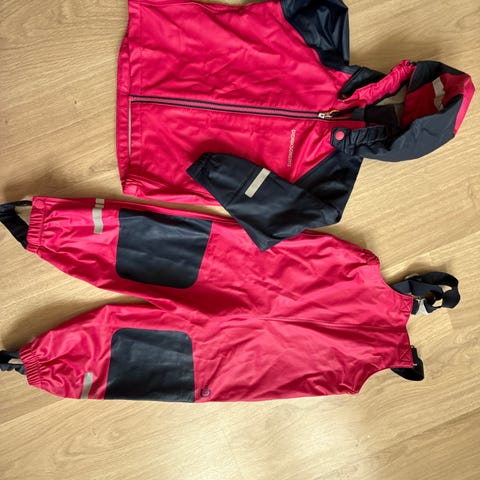 Regntøyet er romslig i størrelsen, og passet frem til barnet var str. 86/92.