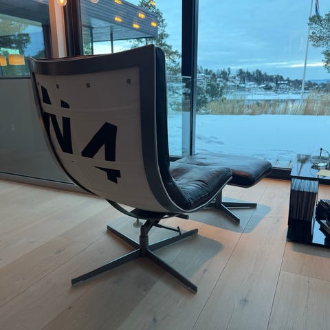 Flott stol fra Hødnebø Tromøya 1,5-seter loungestol selges med stor puff.