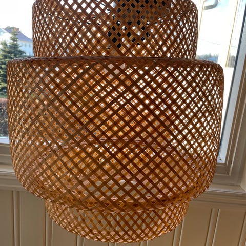 Selger denne IKEA taklampen da den ikke passet inn i rommet den var tenkt til. Pent brukt - men enden på lampen har noe maling på seg. Dette er da innerst på ledningen som er «gjemt» i lampe skålen øverst - så syntes ikke.