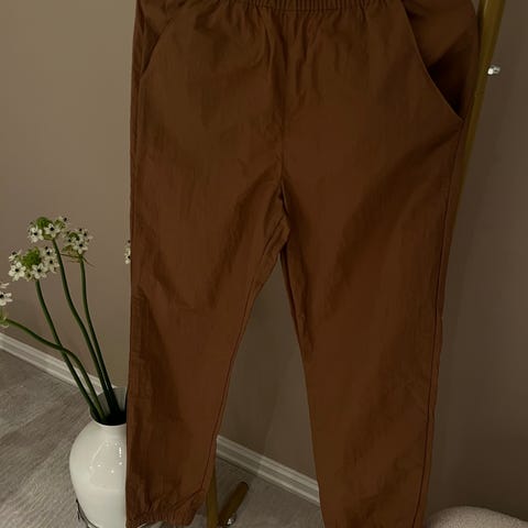 Klassisk og tidløs beige bukse i størrelse S, laget av lin. Bukser i beige farge, designet for kvinner. Materialet gir buksen en lett og luftig kvalitet, egnet for varme dager. Kun brukt 1 gang, var for kort til meg.
