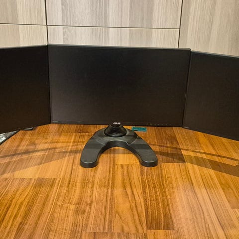 2 stk ASUS VG248 skjermer + dobbelt skjermfeste