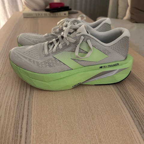 New Balance FuelCell SC Elite v4 løpesko i størrelse 37, kun brukt to ganger. Fantastiske å løpe med men blir litt for små for meg.