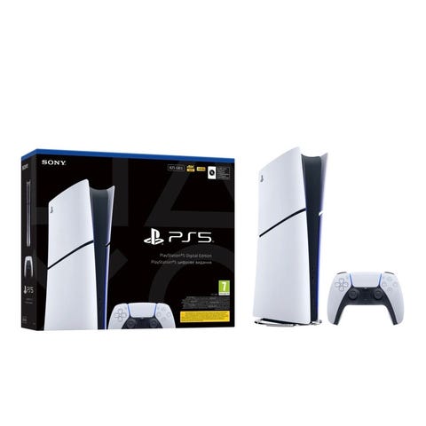 Playstation 5 spillkonsoll med to kontrollere og hodetelefoner.