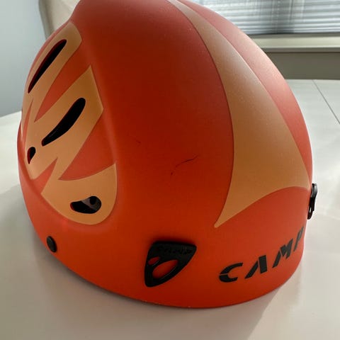 Black Diamond klatrehjelm i rød farge for dame, str S/M. Hjelmen er designet for klatring og tilbyr beskyttelse under aktivitet. Den har justerbare stropper for tilpasning. Ubrukt. Nypris: 1300