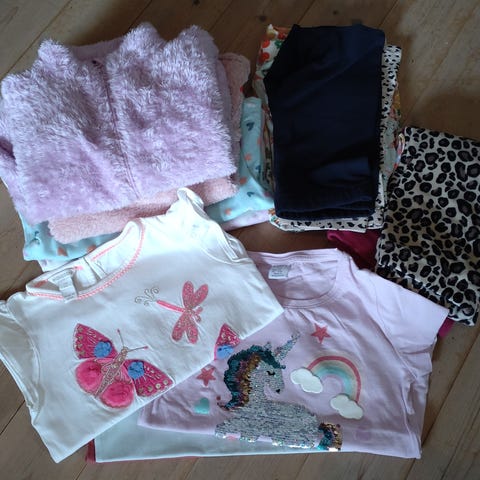Stor fin klespakke med klær i rosa mm. størrelse 110/116 pluss Nike joggesko størrelse 31,5.