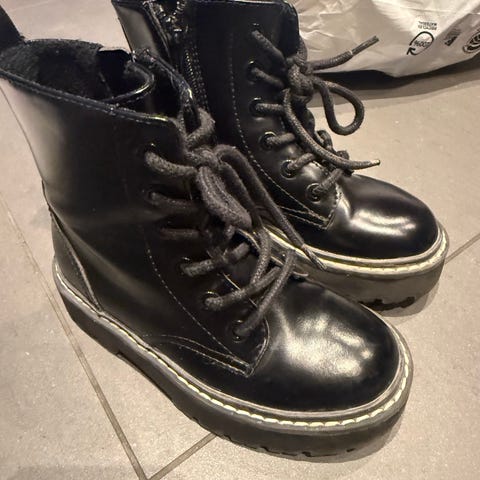 Støvlene er svarte i kunstskinn og har glidelås på siden for enkel på- og avkledning. Sålen har godt mønster for grep. Laget i syntetisk materiale. Fra H&M.