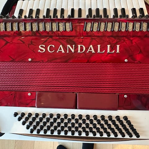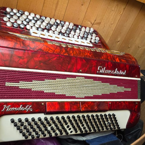 NY PRIS: Selger mitt Brandoni Cassotto Kingline trekkspill for kr 29 000,- Det er et 3-korig trekkspill med 120 basser. Norsk system. Meget godt Italiensk kvalitets-trekkspill med fyldig og god lyd. Lettspilt.