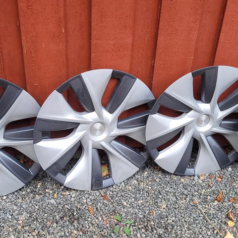 Tesla felger i svart og sølvfarge. Et sett til Tesla Y og et sett til Tesla 3. Pris per sett. Kan sendes.