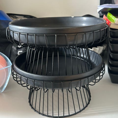 1 stk flernivå metall fruktkurv – Elegant svart design med 3 avtakbare kurver for frukt, snacks og mer – Perfekt til stue, salongbord eller kjøkkenbenk, fruktholder
