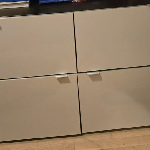 IKEA kommode med fire skuffer. Kommoden har en ramme i lyst tre og skuffer med hvite fronter. Passer til oppbevaring av klær eller andre gjenstander i hjemmet.