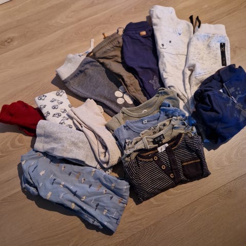 Pent brukt tøy i str. 74. Seleshorts og to bodyer med rillemønstrr i str. 80.