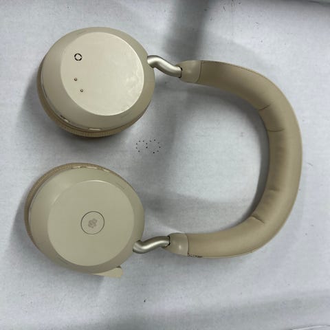 Jabra Evolve2 65 trådløse hodetelefoner med innebygd mikrofon og USB-adapter. Hodetelefonene har polstrede øreputer og hodebøyle for komfort ved langvarig bruk. Leveres med en bæreveske for oppbevaring og transport.