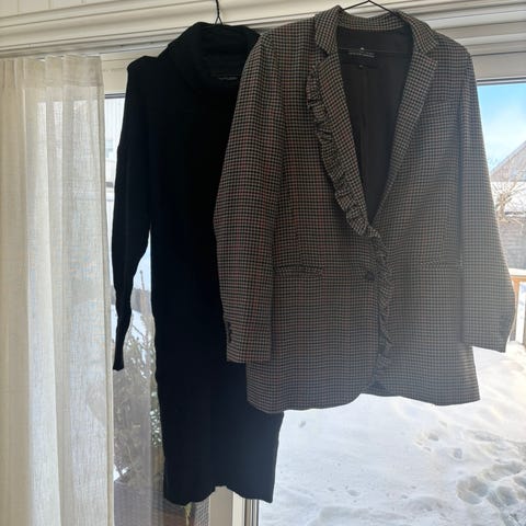 Materiale: 40% ull, 27% resirkulert polyester, 27% viskose, 6% lycra.