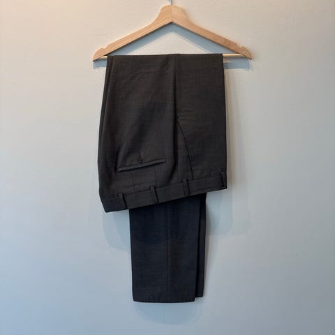 Tiger of Sweden bukser i størrelse 46 for herre. Laget av ullmateriale i grå farge. Smalt snitt.