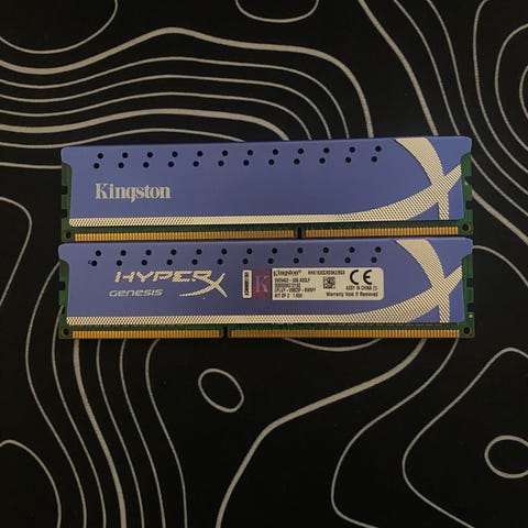 Kingston HyperX DDR3 RAM-modul med blå kjøleribbe. RAM-modulen er designet for bruk i datamaskiner som støtter DDR3-minne.