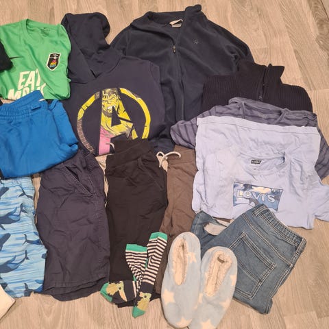 Klespakke etter en slank, lang gutt. Str ca 11-12 år. Div farger, se bilder. God, lett foret fargerik regnjakke LEGO str 146, Vikafjell lettjakke, 12 år, bomber jakke, hettegenser, knall gul T-skjorte, Tommy Hilfiger t-skjorte, veldig myk dongeribukse 11-12 år. Strikkbelte og bukseseler.