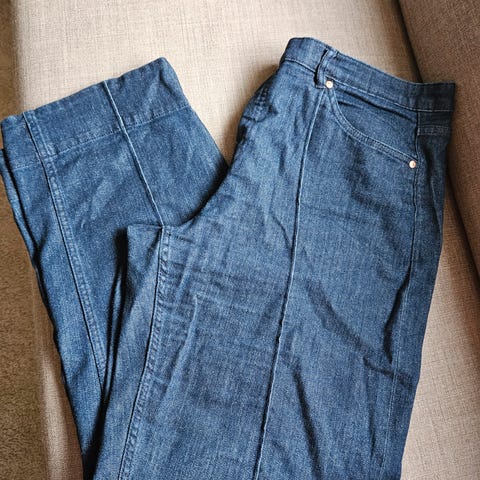 Pent brukt barrel jeans fra lindex i cropped/ankellengde. Kun brukt et par ganger. Passer bra når du er litt kortere, jeg er 160 cm. Veldig fin bukse, men fant ut at jeg liker bedre bukser med høyere liv da denne er litt lavere en høytlivsbukser. Passer ca en XL. Nypris 600 kr🌸