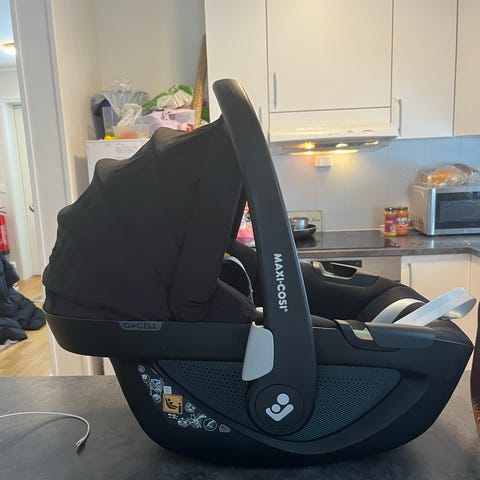 Maxi-Cosi Bilsete til baby med en maksimal vektkapasitet på 12 kg. Føler med Maxi Cosi FamilyFix One i Size (the base). Basen har lys og lyd for å indikere at sete er korrekt installert.