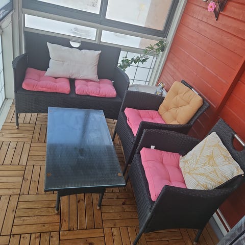 Hengekøye med pute i beige og svart ramme