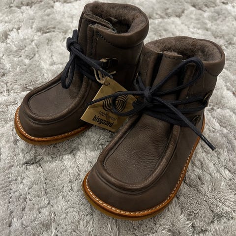 Skinn og ull i foret.
