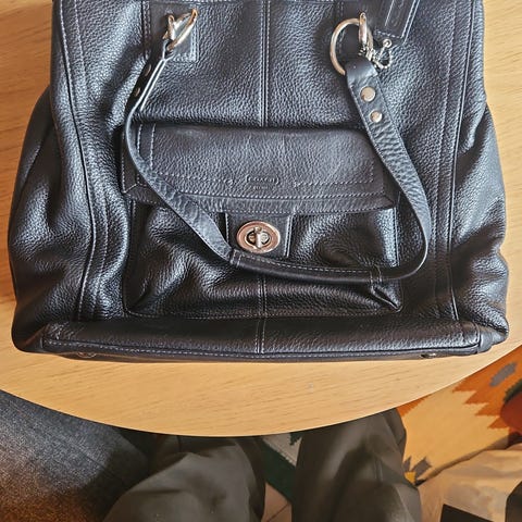 Veske i dongeri og sort selges. Er kjøpt i København, ukjent merke.