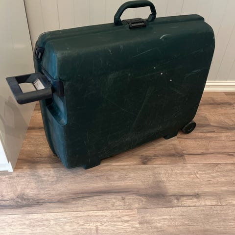 Samsonite S'cure koffert laget i plastmateriale. Kofferten har hjul for enkel transport og innvendige stropper for sikring av innholdet. Passer for både menn og kvinner. Mål i cm: 65x53x22 Brukt med forsiktighet, god stand kan sees på bildet.Møte i Oslo er mulig.