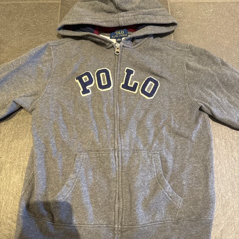 Det er 1100 for hver en Jeg fikk den i gave og den var ikke min størrelse Ralph Lauren gutt strikkejakke og hettejakke i svart farge, laget av bomull. Plaggene er i størrelse 158 og egnet for barn. Strikkejakken har et flettemønster, mens hettejakken har glidelås og snorer på hetten.