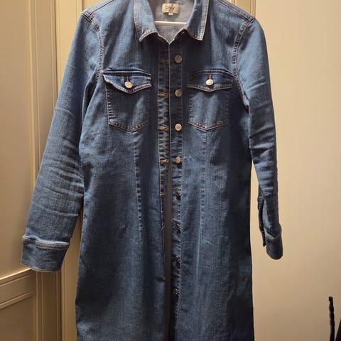 ONLY Blue Behaviour denimjakke i blå farge, størrelse 38. Jakken er laget av denim. Den har knappelukking og lommer på fronten. Det er et lite merker på ermet som vist på bildet.