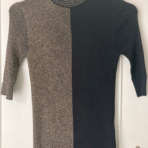 Armani høyhalset genser i svart farge, størrelse 46, som tilsvar 40-42 storrelse norge,laget av viskose. Genseren er designet for damebruk og har en ribbestrikket tekstur som gir et klassisk uttrykk.I veldig god tilstand.