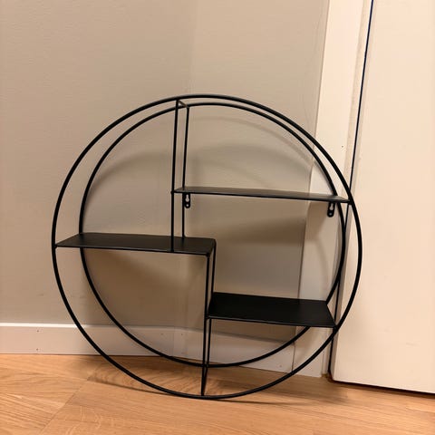 IKEA Botkyrka vegghylle i metall, festes med skinne på veggen.