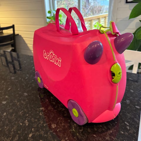 Trunki Ladybird barnekoffert i rød farge med svarte prikker. Laget i hard plast, designet som en marihøne. Utstyrt med håndtak og skulderstropp for enkel bæring. Passer for barn.