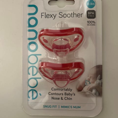Nanobebe Flexy Soother smokker for babyer fra 3 måneder og oppover. Smokkene har en fleksibel passform som er tilpasset barnets nese og hake.