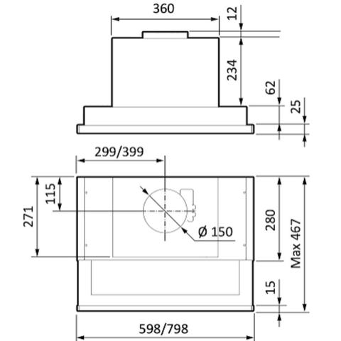 Luna vegghengt kjøkkenventilator 60x85