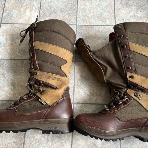 Vinterjaktsko med integrert gamasje. Selve skoen er ca. 26 cm høy og er noe fôret, med gamasjen gir dette en varm og helt vanntett sko. Gode refleksdetaljer. Silikonbånd rundt på toppen/innsiden av gamasjen gjør at den ikke sklir ned. Tetter meget godt på toppen, fint om en vasser i snø. Gamasjen har glidelås i front og solid borrelås som dekker glidelåsen. Litt vid lest gir god plass til føttene - viktig i kulde. Enkelt påtrekk og god snøring. Stiv såle som gir meget god støtte og godt feste på de fleste underlag. Isolerer godt mot bakken. Støvelen er testet ned til – 25 kuldegrader med utmerket resultat! Gir bra støtte i ankel. Sitter godt på foten, god å gå med.