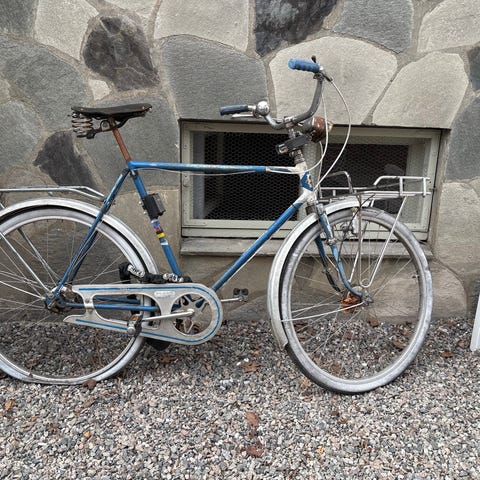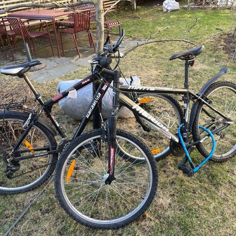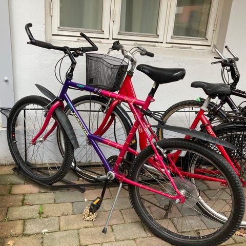 Sameiet gir bort overflødige sykler. Se med lapp. Ulike typer
