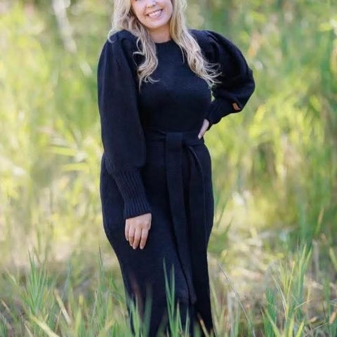 Flott strikkekjole fra ByLien i størrelse L.