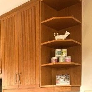 Som ny bortsett fra noen få skruehull på den ene. Følger med 3 hylleknekter til hver.